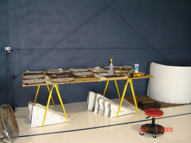 Fuel Tank covers ready for installation. The aircraft Captain (the one in the middle with the light blue shirt) decided that