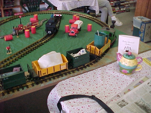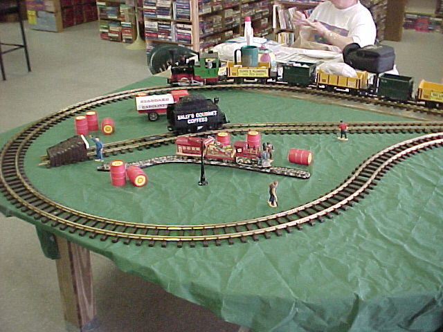 Sally uses a G Gage train to deliver Coffee and Beagles to customers.