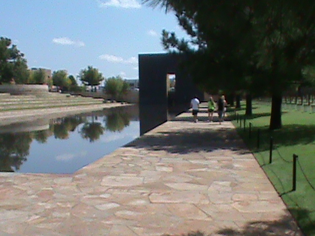 Oklahoma memorial 9:01 gate & reflecting pool, the survival tree, the 168 empty chairs, the 9:03 gate. A display on top of the U-Haul building & Stockyard City